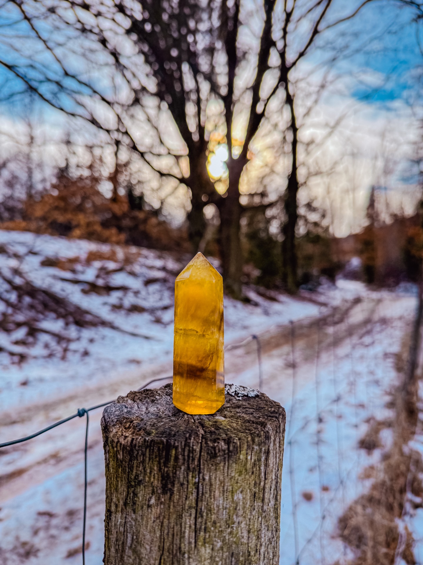 Žlutý fluorit - symbolizuje radost, optimismus a energii, má podporovat sebevědomí a rozhodnost.
