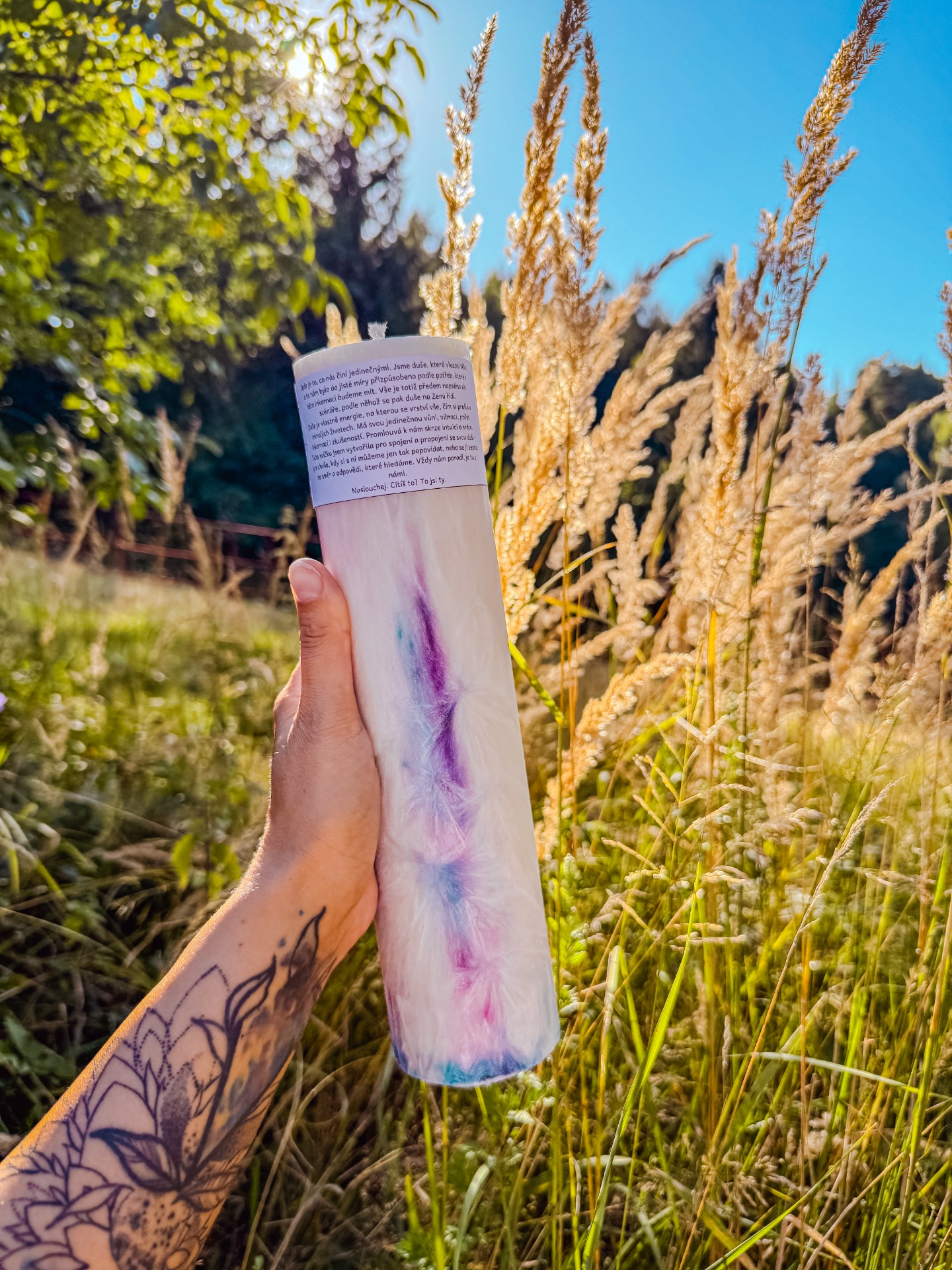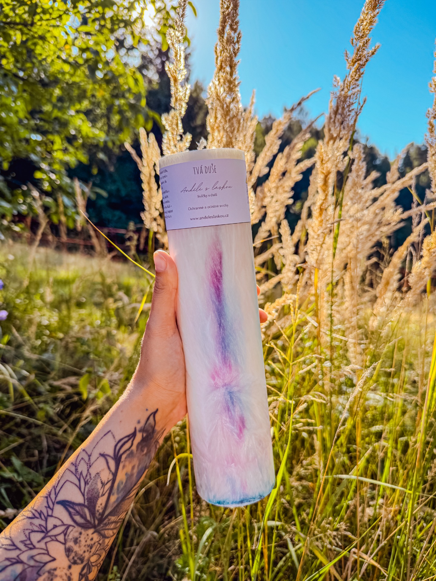 Tuto svíčku jsem vytvořila pro spojení a propojení se svou duší – pro chvíle, kdy si s ní můžeme jen tak popovídat, nebo se jí zeptat na směr a odpovědi, které hledáme. Vždy nám poradí, je tu s námi.